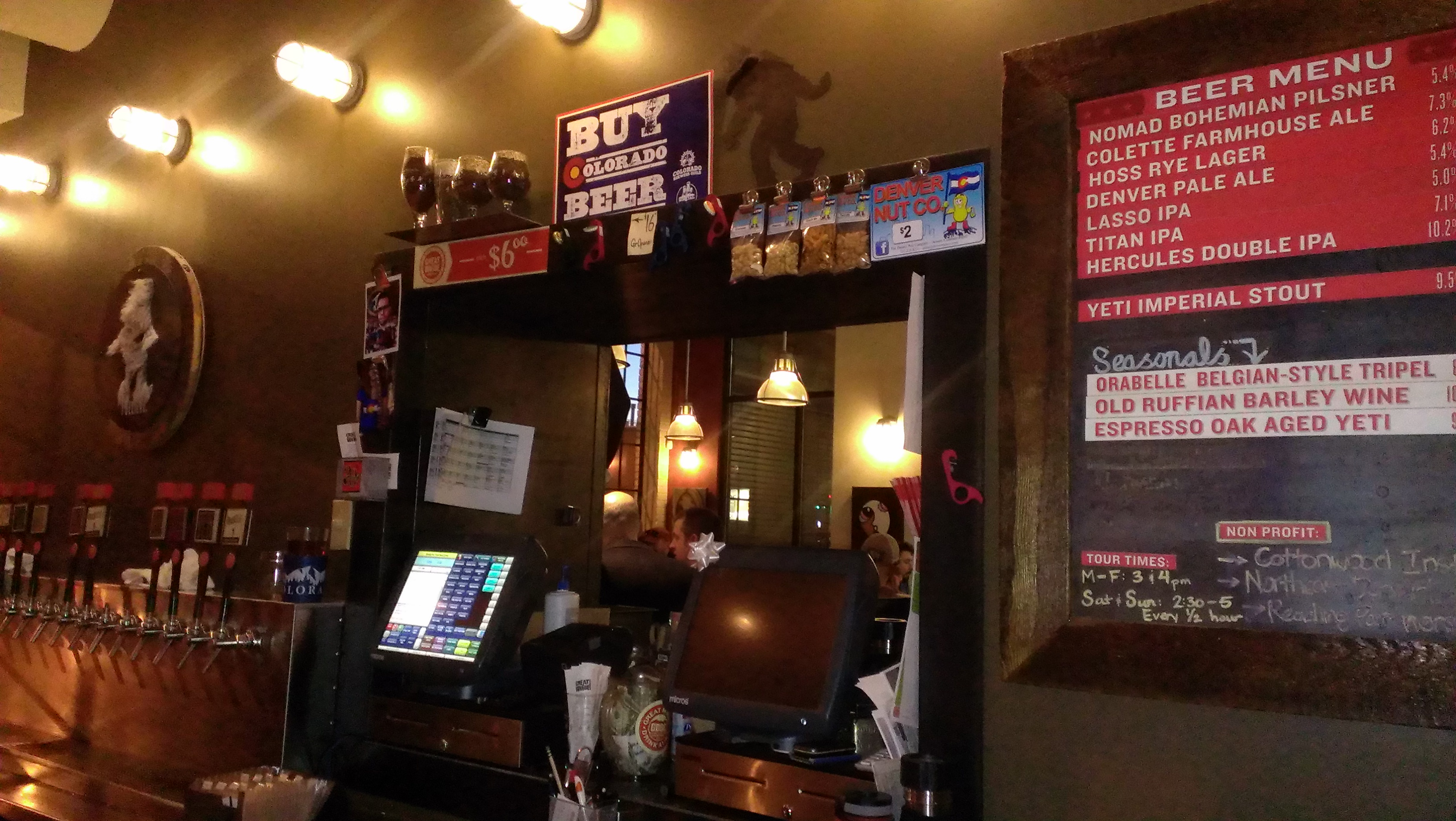 I got a small sampling of 3 beers. I was impressed with the glassware they had for flights, and would find this to be the case at a good many of the Colorado breweries. They were smaller snifters that maybe held 5-6 ounces each. I tried a few beers I had never had on the east coast. They were Orabelle, which is a Belgian Tripel, the Denver Pale Ale, and the Colette Farmhouse Ale. All 4-4.5 stars. This wasn’t a shocker. I expected great things and I got great things.